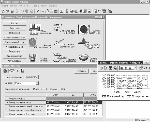 Названі підходи покладені в основу аналітичної системи Project Expert компанії «ПРО-ИНВЕСТ-ИТ», що базується на методиці оцінки інвестиційних проектів UNIDO. Послідовно моделюючи в системі плановану діяльність нового чи діючого підприємства і зміни в економічному середовищі, можна вести інвестиційне проектування і фінансове планування, створювати бізнес-плани, що задовольняють міжнародним вимогам, а також оцінювати ефективність реалізації проектів. Project Expert дозволяє проаналізувати альтернативні варіанти розвитку проекту і вибрати оптимальний шлях розвитку підприємства, визначити потреби підприємства в коштах, підібрати оптимальну схему фінансування й умови кредитування, оцінити запас міцності бізнесу, ефективність вкладень для всіх учасників проекту, вибрати варіанти виробництва, закупівель і збуту, а також вести контроль за реалізацією проектів.