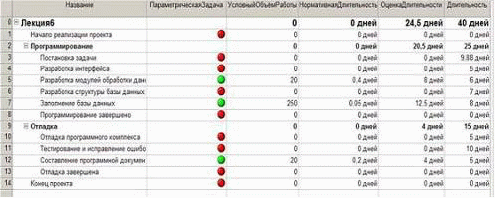 временные параметры, включающие сроки, продолжительности и резервы выполнения работ и этапов проекта, а также взаимосвязи между работами;