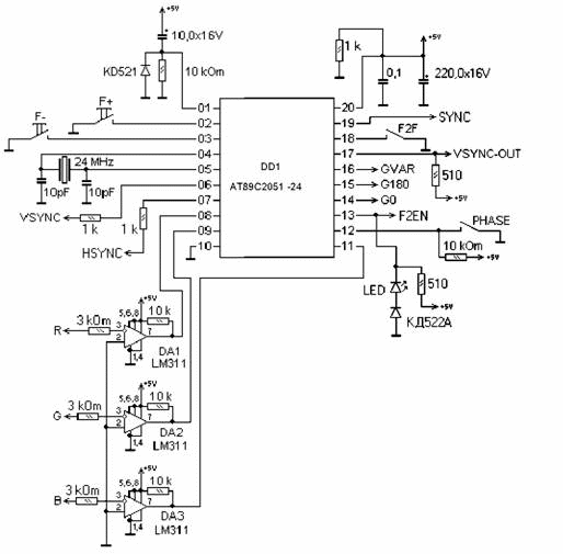 Синхронизатор позволяет синхронизировать циклы обращения процессора к видеопамяти с процессом регенерации изображения. От внутреннего генератора вырабатывается частота вывода пикселов DotClock, относительно которой строятся все временные последовательности сканирования видеопамяти, формирования видеосигналов и синхронизации монитора. В то же время процессор обращается к видеопамяти асинхронно относительно процесса регенерации. В задачу синхронизатора входит согласование этих асинхронных процессов.