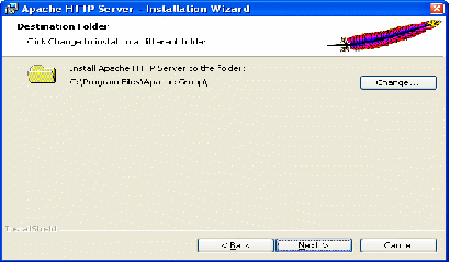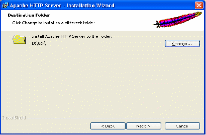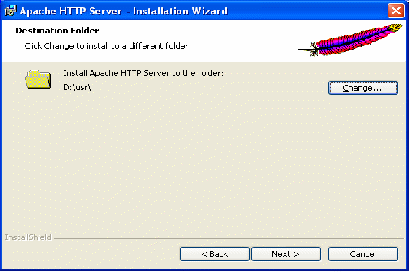 C помощью кнопки «Сhange» (Изменить) можно указать папку, в которую будет установлен Web – сервер Apache: D:\usr\: