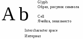 Все символы моноширинного шрифта имеют одинаковую ширину и одинаковые интервалы между символами (как, например, шрифт пишущей машинки). Символы пропорционального шрифта могут иметь различную ширину и даже различные интервалы между символами.