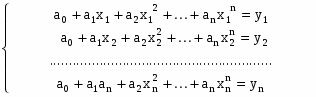 Необходимо определить коэффициенты полинома степени n(их будет n+1), построения аппроксимации функции, заданной в n+1 узле. Используя ограничения на (): (i)= (i)=y, i=0,n , составим систему: