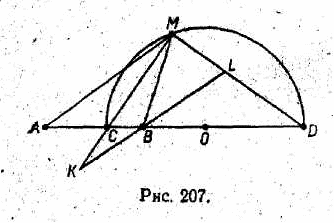 Теорема 242. Довільна точка М така, що відношення її віддалей від двох даних точок А і В дорівн.є m: n, лежить на колі з діаметром CD, причому точки С і D ділять відрізок АВ відповідно зсередина і зовні у відношенні m: n.