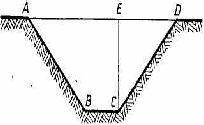 Решение. Требуется найти угол между плоскостью склона и горизонтальной плоскостью. Он равен углу между прямыми (рис. 49) в продольном сечении склона. Из курса физики известно, что для устойчивости тела на наклонной плоскости необходимо, чтобы вертикаль, проведенная через центр масс А, не выходила за пределы опоры BD. Рассмотрим предельный случай, когда эта вертикаль АВ проходит через границу опоры. Проведем AC