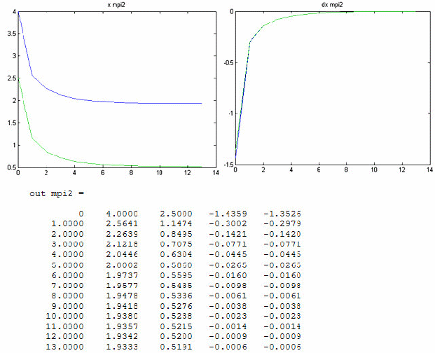 dxout – матрица размерности n×2 значений ошибки решения, составленная по строкам из ошибок на m-ном шаге;