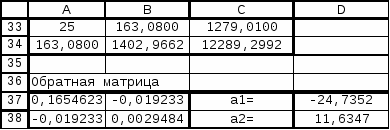 2. Сравнивая результаты, полученные при помощи функции ЛИНЕЙН видим что они полностью совпадают с вычислениями, проведенными выше. Это указывает на то, что вычисления верны.