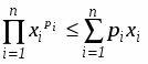 Известное неравенство Коши или говорит о том, что среднее геометрическое и среднее арифметическое сравнимы для любых чисел xi>0 и любых весов , ,.