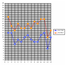 в начале (тест № 1) и в конце эксперимента (тест № 2)