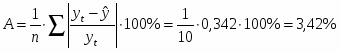 В среднем в степенной модели расчетные значения отличаются от фактических на 3,42 %. Ошибка небольшая, модель можно считать точной.