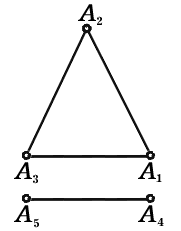 В случае, изображенном на рисунке1, все условия теоремы Эйлера выполнены, m=12, n=18, l=8 и m–n+l=2. На рисунках2 и 3 изображены случаи, когда условия этой теоремы не выполняются. Так, на рисунке2 из точки A1 нельзя попасть в точку A5 и m–n+l=3≠2, а на рисунке3 линия, соединяющая точки A1 и A2, является самопересекающейся и опять m–n+l=3≠2.