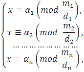 Систему сравнений первой степени с одним и тем же неизвестным, но с разными модулями, запишем в общем виде так: