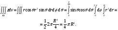 Пример. Вычислим полярный момент инерции однородного шара радиуса R. В этом случае очень удобно перейти к сферическим координатам. Будем иметь