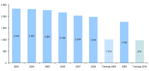 Протягом останніх років стан хлібопекарської галузі характеризується спадом обсягів виробництва хліба та хлібобулочних виробів, що пов’язано зі скороченням споживання, демографічною ситуацією в країні та збільшенням обсягів випікання хліба невеликими пекарнями, супер- та гіпермаркетами, а також домашніми господарствами (ці обсяги не обліковуються офіційними статистичними даними). У 2009 році, за попередніми даними, вироблено 1,755 тис.т хліба хлібобулочних виробів, що на 11,3% менше, ніж у попередньому році (рис. 2). За 7 місяців 2010 року обсяг виробництва хліба становив 975 тис.тонн (на 3,7% менше, ніж торік).[ ]