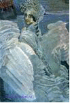 Мерцают бирюзовые, голубые, изумрудные самоцветные камни узорчатого венца-кокошника, и мнится, что это трепетное сияние сливается с отблеском зари на гребнях морских волн и своим призрачным светом словно окутывает тонкие черты бледного лица, заставляет оживать шелестящие складки полувоздушной белой фаты, придерживаемой от дуновения ветра девичьей рукой.