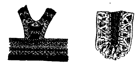 Показанные информаторами способы раскладок кроя дают представление об очень рациональных, безостатковых раскроях (рис. 1). При их выполнении руководствовались традициями, а также шириной тканого полотна (35 - 60 см), которая ограничивалась размерами ткацкого станка - "кросен". Если при крое все же получались небольшие остатки (как правило, в более поздних вариантах), то они использовались на обшивку ворота, низа рукавов.